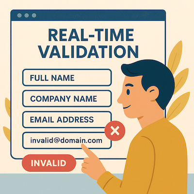 Stop bad emails at the source. Install our lightweight script on your website forms to validate email addresses in real-time, preventing fake and invalid emails from entering your system.